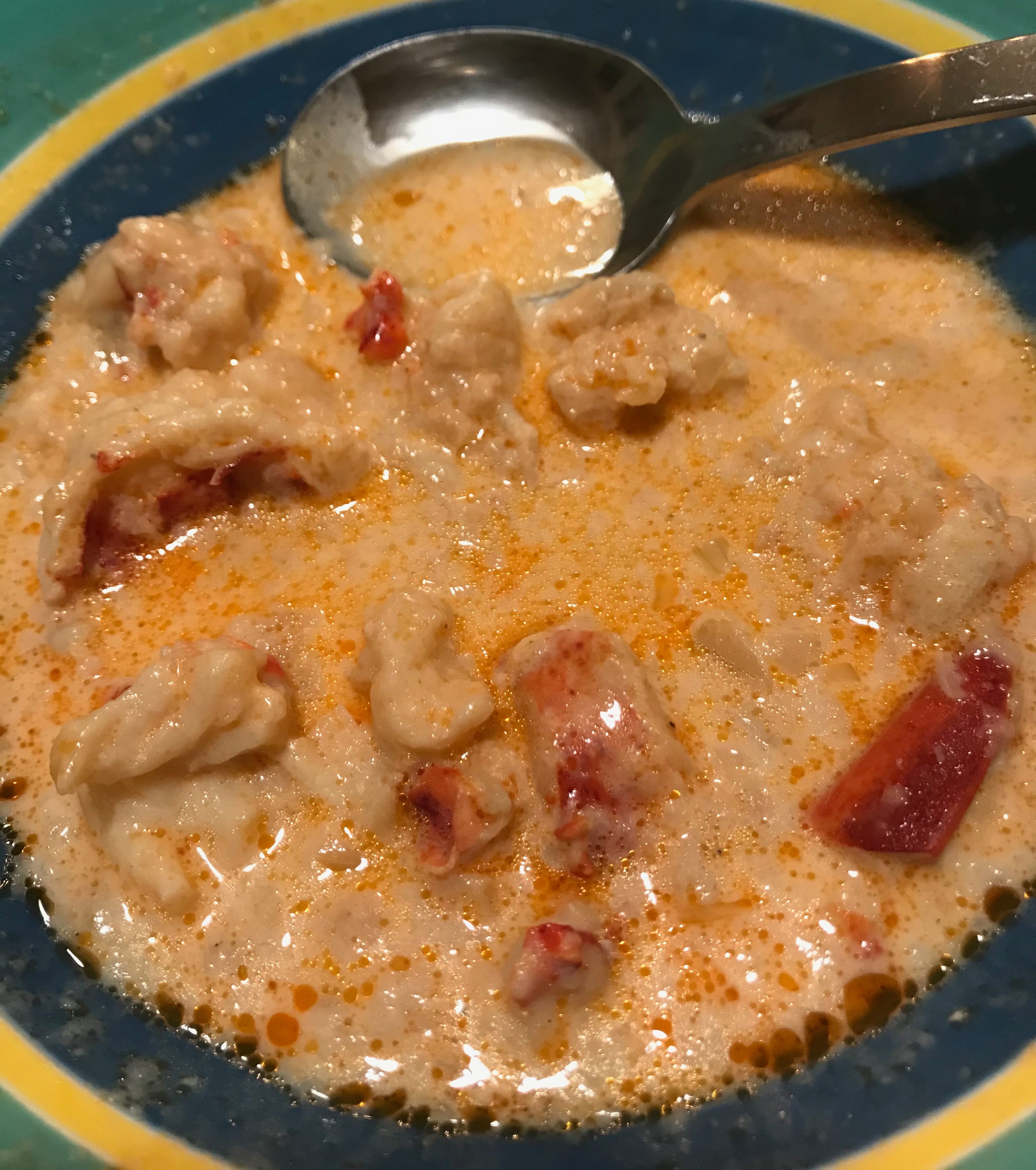 Christmas Eve (la Vigilia, the vigil, in Italy, Noche Buena in Spain, Réveillon in France), according to ancient church dogma, marks the end of the Advent fast. I’m told the fast has not been obligatory since about the 12th century, but old habits die hard and in Catholic cultures some form of symbolic fasting (beans or fish but above all no meat) is traditional for the Night Before Christmas. As usual, we’ll have something fishy for dinner before the great feast—but something fishy in this case means lobster stew, a rich assemblage of goodness that I learned to make from Maine’s culinary eminence Sam Hayward a good many years ago.