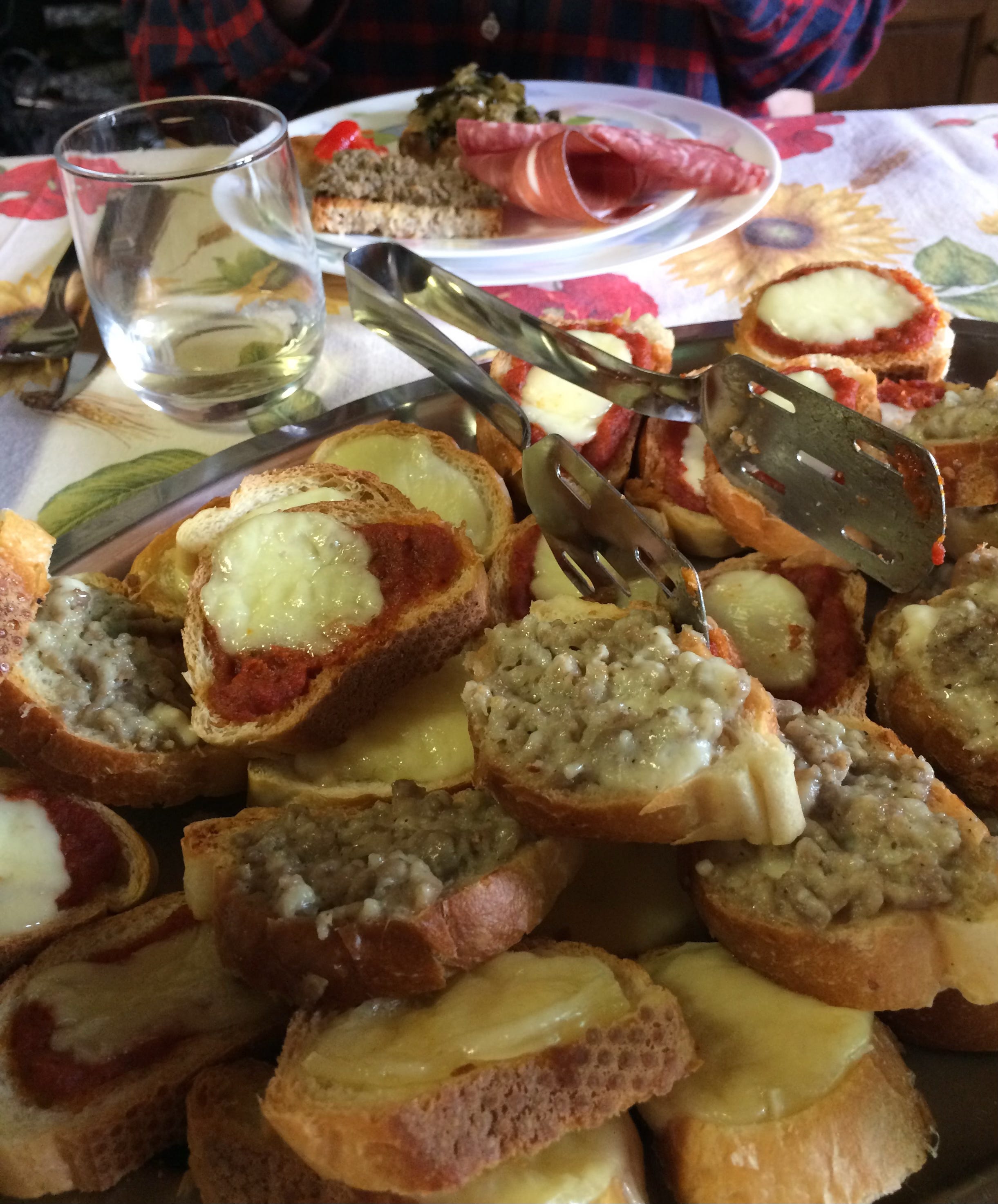 At the same time, where once local shoppers had access to a wide range of prepared foods, prepared on site, that is, delicate spinach gnocchi, individual baked lasagnas, hefty slices of porchetta or a skewer of pork livers called fegatelli, salt cod with potatoes on Fridays, stewed tripe on Saturdays, pasta e fagioli almost any day of the week, things a busy housewife had no time to make at home, now a lot of that need is filled by frozen or, worse yet, ultra-processed food. One of the most disheartening sections of our local supermarket is the aisle devoted to snack foods for children. Here a harried mother can pick up individual packs, one for each child for each day of the week, of the kind of high-fat, high-sodium, highly sweetened and chemically stabilized junk that Americans are accustomed to. Gone are the slabs of country bread with a smear of ricotta or tomato paste or even Nutella that kids used to get.