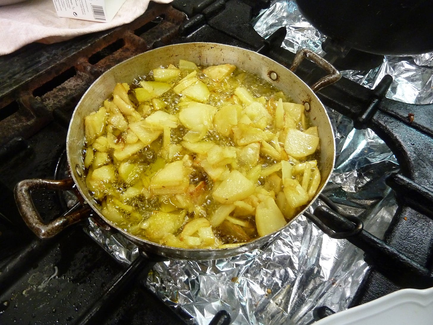 The extra-virgin you choose for cooking doesn’t have to be the finest oil on the market. Just as you wouldn’t use Chateau Lafite-Rothschild to make boeuf bourguignon, it would be foolish to use an expensive, freshly pressed, estate-bottled oil for deep-fat frying. There are plenty of very good, indeed excellent oils, widely available in U.S. markets, that are eminently appropriate, and they come from all over the world-wide map of olive oil—from California, Italy, Greece, Spain, even from Australia. (Two that I especially like are Iliada from Greece, and California Olive Ranch—but only the COR that is genuinely from California, stated on the label. And there are many others.) Buy in small quantities until you find one that particularly pleases you, then, for best value, purchase a big 3- to 5-liter tin. Store the tin in a cool, dark pantry cupboard and decant half a liter or so at a time to keep within easy reach in the kitchen. That will give your oil a much longer life span.