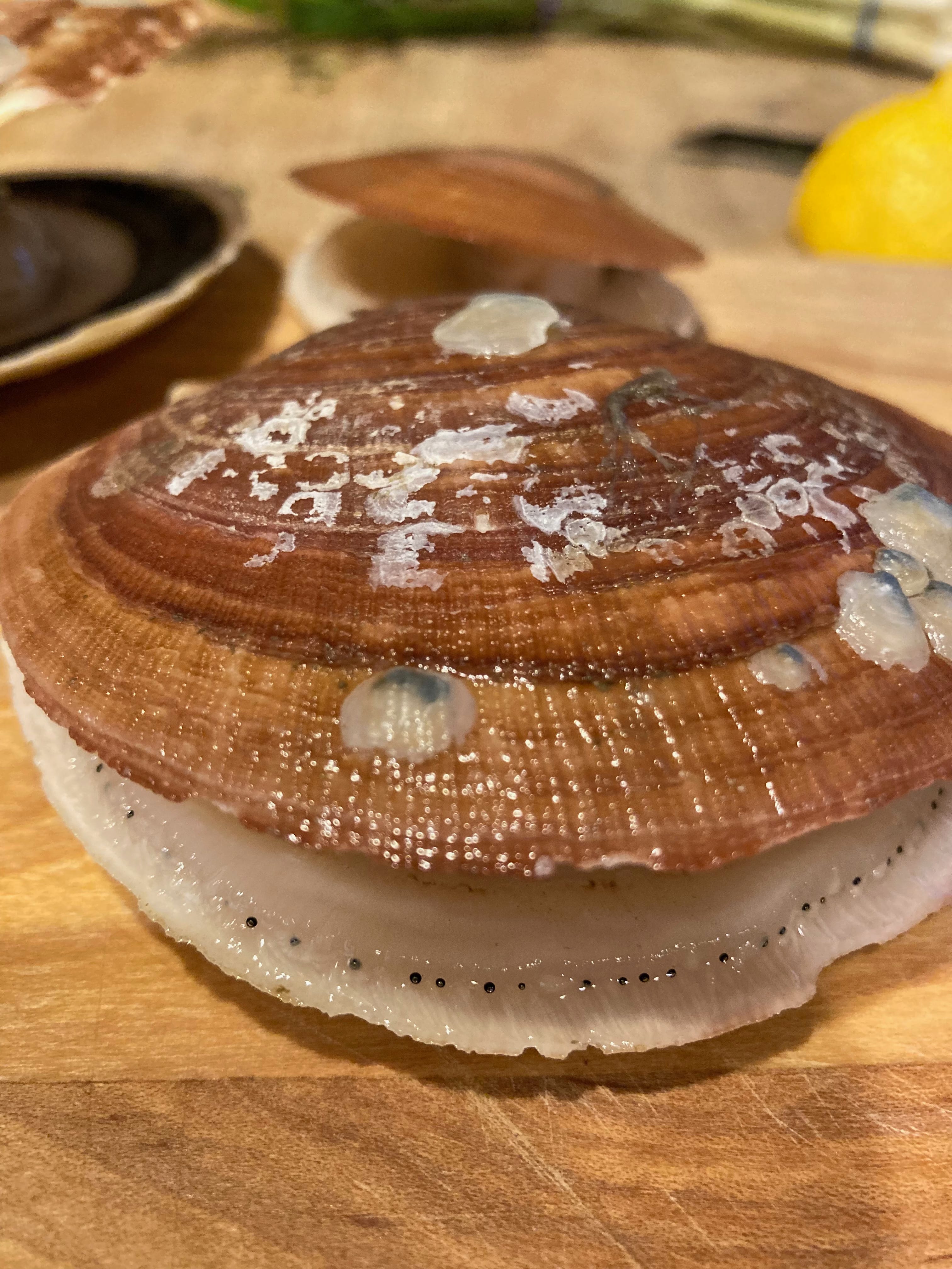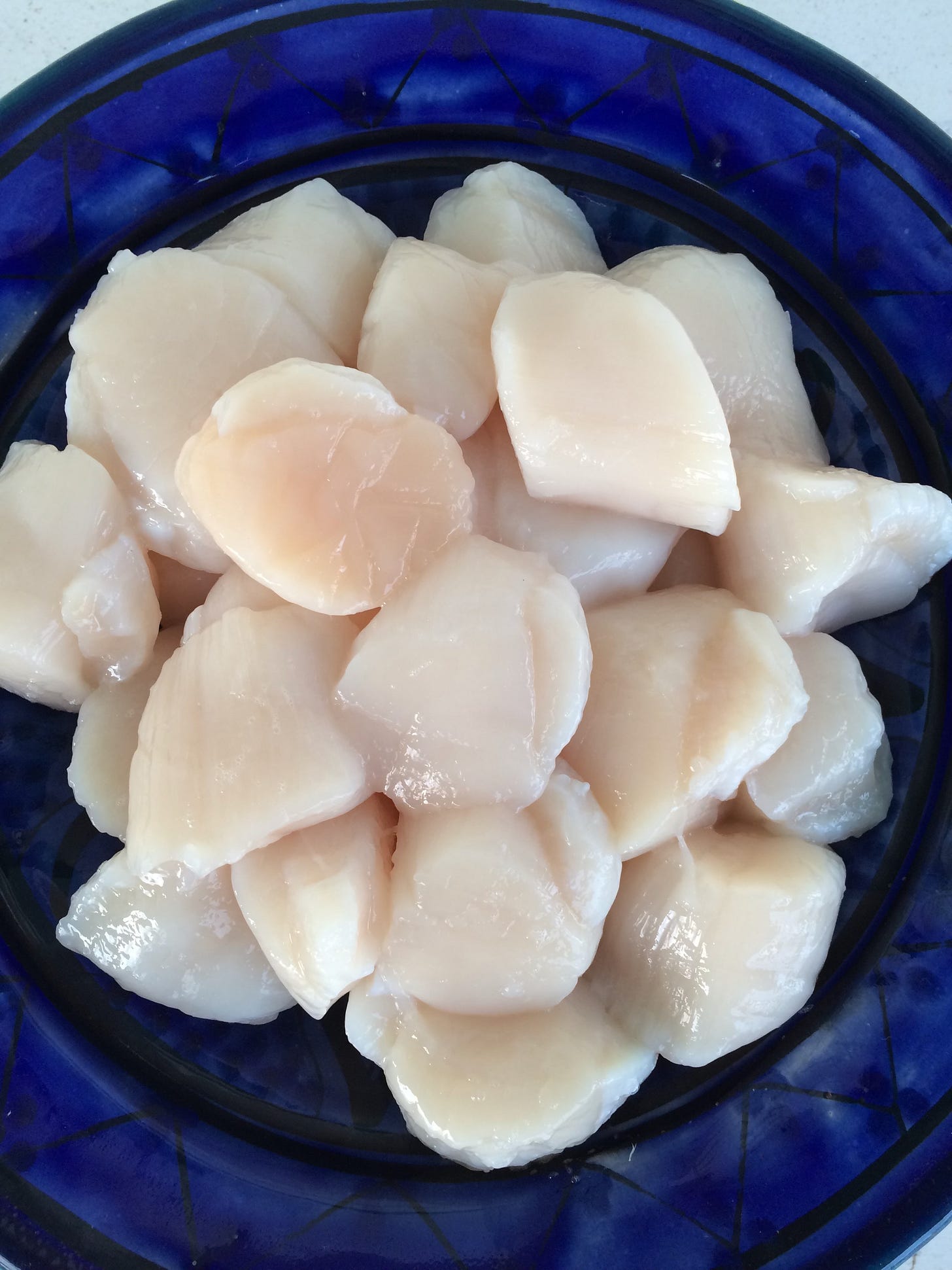 So why do we not find scallops with their roes attached in our seafood markets? It’s complicated but in Maine, which is a major scallop producer, by law only the adductor muscle can be harvested because of the possible presence of biotoxins in the viscera, including the gonads, of scallops. The state reassures us that “there are no biotoxin threats found in the scallop adductor meats landed in Maine,” but to be on the safe side, gonads and other viscera are removed at sea.